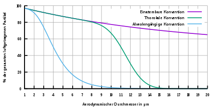 Darüber hinaus werden ultrafeine Partikel (UP bzw. UFP, „Ultrafeinstaub“) als Partikel mit einem aerodynamischen Durchmesser von weniger als 0,1 µm definiert. Der aerodynamische Durchmesser beschreibt ein kugelförmiges Partikel mit einem identischen Diffusionsverhalten wie das betrachtete Partikel.