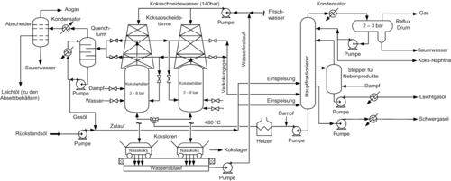 Ein auf einem Exxon-Patent beruhendes thermisches Crackverfahren, aus schwersten Rückständen (Visbreaker-Vakuumrückstand u.ä) noch wertvolle leichte Kohlenwasserstoffe herzustellen. Die Kohlenwasserstoffgemische sind allerdings hocharomatisch und hocholefinisch (wie z.B. Light Coker Naphtha, LCN) und benötigen in den meisten Fällen noch eine zusätzliche Wasserstoffbehandlung. Der Prozess erzeugt nur sehr geringe Mengen Kohlenstaub, jedoch eine große Menge an niederkalorischem Gas, das einfach entschwefelt und als Heizgas verwendet werden kann.