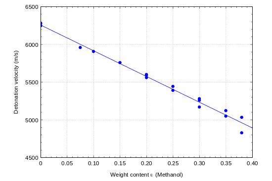 Gemische von Nitromethan mit Methanol sind ebenfalls detonationsfähig. Die Detonationsgeschwindigkeit sinkt mit zunehmenden Methanolanteil linear ab und sinkt bei einem Anteil von 35 % Methanol auf 5.08 km/s.