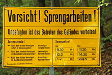Warnschild am Betriebsgelände des Sprengstoffwerks Gnaschwitz