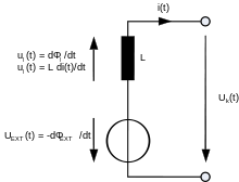 u(t)=L\cdot {\frac  {{\mathrm  {d}}i(t)}{{\mathrm  {d}}t}}\,