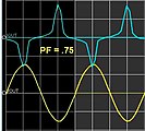 Der Blindleistungsanteil wird in der Regel auf einen Leistungsfaktor {\displaystyle \lambda =P/S\ }, der in diesem Fall gleich \cos \varphi ist, von etwa