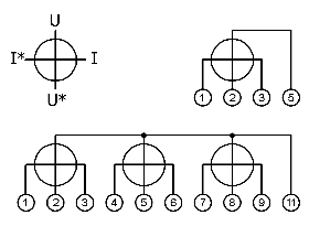 Falls P negativ ist, aber kein negativer Messwert ausgegeben werden kann, kann man sich durch bewusste Vertauschung der Richtung im Spannungspfad (oder Strompfad) helfen. An Laborgeräten sind die Klemmen eingangsseitig häufig mit einem Stern versehen; Geräte zur dauerhaften Installation tragen eine Klemmen-Nummerierung gemäß DIN 43807; Beispiele siehe Bild.