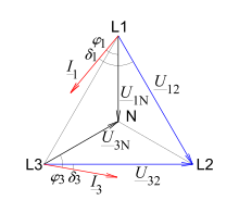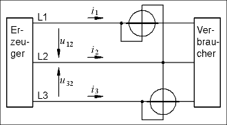 drei Außenleitern, wie er im Niederspannungsnetz mit