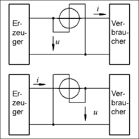 Erzeuger- und Verbraucher-Bepfeilung bringen es mit sich, dass bei Energiefluss vom Erzeuger