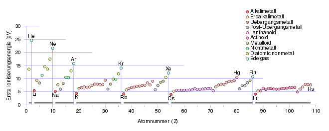 Anziehungskraft des Kerns zu lösen. Entsprechend nimmt die erste