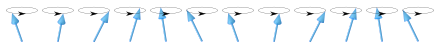 Dagegen zeigt er beim quantenmechanischen Magnonzustand, der zu diesem Grundzustand passt, an einer einzigen Stelle – mit einer gewissen korrelierten Wahrscheinlichkeit, die dem obigen halbklassischen Bild entspricht – nach unten: