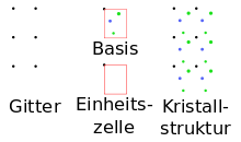 Die Struktur von Kristallen wird durch die beiden Begriffe Gitter und Basis beschrieben.