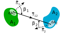 zwischen der Strahlrichtung und den Flächennormalen berücksichtigt wird.