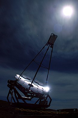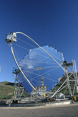 Treffen sehr energiereiche kosmische Teilchen auf die Erdatmosphäre, werden je nach Art des Teilchens durch verschiedene Prozesse neue Elementarteilchen gebildet, welche Tscherenkow-Licht erzeugen können. Es entstehen dabei Lichtblitze (Tscherenkow-Blitze) mit einer Dauer von Milliardstel Sekunden, aus denen man die Herkunftsrichtung der kosmischen Teilchen bestimmen kann. Dieser Effekt ist für die Beobachtung wichtig, weil z.B. Gammastrahlung von kosmischen Explosionen die Erdatmosphäre nicht durchdringt und deshalb von Teleskopen auf der Erde nicht direkt wahrgenommen werden kann. Erst der aus den Gammaquanten (hochenergetischen Photonen) entstehende elektromagnetische Schauer (bestehend aus Elektronen, Positronen und niederenergetischeren Photonen) kann von erdgebundenen Messgeräten (Tscherenkow-Teleskopen) analysiert werden. Bekannte Projekte sind MAGIC, High Energy Stereoscopic System, FACT und Cherenkov Telescope Array.