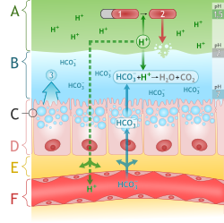 Die Zellen des Isthmus bestehen zum Teil aus Epithelzellen. Sie bilden, wie das übrige Epithel, Schleim (Mucus) und Bicarbonat-Ionen, die als Basen eine Pufferwirkung gegenüber den freien Protonen haben. Dieser alkalische Schleim schützt das Epithel vor dem sauren Milieu des Magens. Weiter in der Tiefe befinden sich Stammzellen, die sich kontinuierlich teilen und die absterbenden Epithelzellen ersetzen.[1]