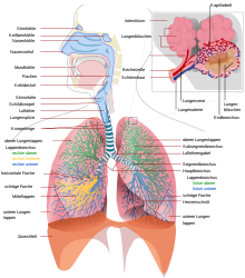 Das Bronchialsystem nimmt insofern eine Sonderstellung ein, als es flächenmäßig zwar den größten Teil der luftleitenden Wege ausmacht, es jedoch – mit Ausnahme der Hauptbronchien – als „Bronchialbaum“ (fortschreitende bronchiale Verzweigung) in den Lungen eingebettet ist. Die in den Alveolarraum leitenden Hohlorgane besitzen drei Aufgaben, nämlich Partikel als Niederschlag zu filtern, die Atemluft anzuwärmen und anzufeuchten.