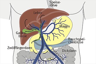 Über die Nahrung aufgenommene Stoffe gelangen nach der Passage durch den Magen vom Darm durch Resorption in den Blutkreislauf und über die Vena portae in die Leber. Dort unterliegen sie zum Teil einer biochemischen Umwandlung, das heißt, sie werden durch Enzyme sowohl gespalten als auch mit bestimmten chemischen Gruppen versehen. Bei letzteren Reaktionen entstehen sogenannte Konjugate. Die Gesamtheit dient der Entgiftung sowie der Erhöhung der Wasserlöslichkeit (Hydrophilie) und damit der Ausscheidung dieser Stoffe. Dieser Prozess wird auch als Biotransformation bezeichnet. Von der Leber werden sie dann mit der Galle über die Gallenblase und den Gallengang in den Darm abgegeben, von wo sie dann in Abhängigkeit von ihren chemischen und physikalischen Eigenschaften durch Resorption erneut in den Blutkreislauf und damit in die Leber gelangen können.