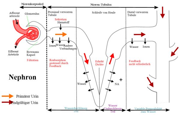 Die meisten Stoffe, die im Harn erscheinen, werden im Tubulussystem teilweise rückresorbiert oder aber in das Tubuluslumen hinein
