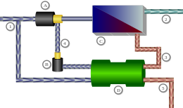 C: Osmose-Einheit mit Membran, D: Druckaustauscher