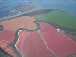 Phototrophe halophile Einzeller sind die Ursache für die intensive Farbe, die Salz- und Sodaseen oder Meersalzgewinnungsanlagen haben. Die Pigmente dieser Organismen sind so hoch konzentriert, dass sie quasi durch die gesamte Nahrungskette wandern: Sie färben halophile Krebse, die sich von den Mikroorganismen ernähren und schließlich die Flamingos, die ihrerseits die Krebse fressen.