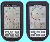 Digitale Anzeigegeräte zeigen die Druck- und damit die geschätzte Höhenänderung auf einem elektronischen Display an. Im gezeigten Beispiel rechts werden metrische Maßeinheiten verwendet (Höhenmesser=Höhe in Metern und Variometer=Steigen/Sinken in Metern pro Sekunde).