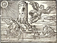Hier ist allerdings auch der erste Flugunfall ( wegen Nichtbeachtung der Flugvorschrift stützte Ikarus ab)