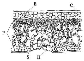 Blätter werden auch von einer Vielzahl von Pilzen befallen, wie etwa von Mehltau-, Brand- und Rostpilzen, die in landwirtschaftlichen und gartenbaulichen Kulturen große Schäden anrichten können. In Blättern leben auch oft endophytische Pilze, die zu keiner erkennbaren Schädigung der Pflanze führen.