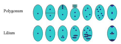 Von diesem Entwicklungstypus gibt es zahlreiche Abweichungen, je nachdem, ob ein, zwei oder alle vier Megasporen am Aufbau des Embryosacks beteiligt sind, sowie auch, wie der Embryosack weiter aufgebaut ist. Diese Typen werden nach der Gattung, bei der sie erstmals beschrieben wurden, bezeichnet.
