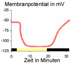 Die Hyperpolarisation ist notwendig, da im Cytosol die K+-Konzentration höher (ca. 100 mM) als im Apoplasten (ca. 1 mM) – der Quelle der Kalium-Ionen – ist. Die Kaliumkanäle öffnen sich ab −100 mV, und die Kaliumionen können gegen ihr Konzentrationsgefälle, aber mit dem Potentialgefälle von außen nach innen diffundieren.