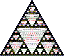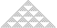 In Stephen Wolframs eindimensionalen zellulären Automaten erzeugt eine einzelne lebende Zelle in Regel 90 ein Sierpinski-Dreieck.
