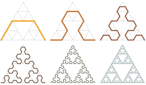 entfernt. Mit jedem Schritt verdreifacht sich die Anzahl der Dreiecke und die