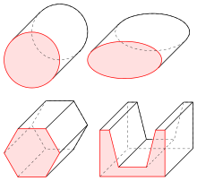 - Ist die erzeugende Kurve ein Polygon, so spricht man von einem Prisma (siehe Beispiele).