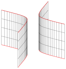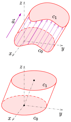 werden durch eine Strecke verbunden. Die Gesamtheit dieser parallelen Strecken bildet die zugehörige Zylinder-Fläche (siehe Bild). Die Kurve