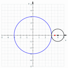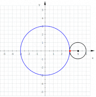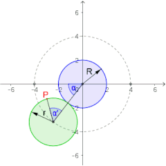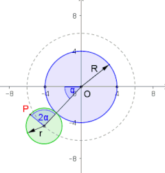 (siehe Bild) vom inneren Kreis (blau) auf das Zentrum des abrollenden Kreises
