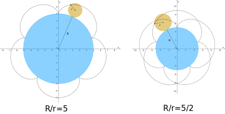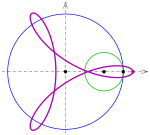 Rollt der kleine Kreis in dem großen Kreis, entsteht eine Hypozykloide bzw. Hypotrochoide. Siehe auch den Artikel über Zykloide.