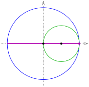 Ein Kreispaar, bei dem der kleine Kreis den halben Radius des großen Kreises hat, und der kleine Kreis in dem großen abrollt, nennt man Cardanische Kreise.