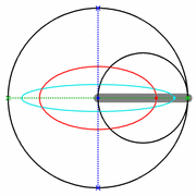 Ellipsen (rot, cyan) mit cardanischen Kreisen