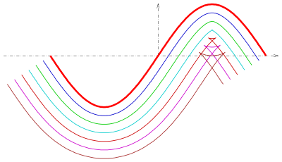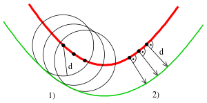 im Abstand d ist die Einhüllende der Kreise mit Radius d und Mittelpunkte auf der Kurve