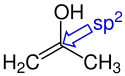 ![]() Enol des Acetons: Hydroxygruppe am sp2-hybridisierten Kohlenstoffatom. (Im Gleichgewicht liegen 99,9998 % des Acetons in der Keto- und 0,0002 % der Enol-Form vor.) |