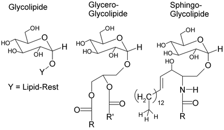 Phospholipide, Sphingolipide und Glycolipide sind zellmembranbildende Lipide. Sie unterscheiden sich durch ihre polaren Reste. Im Fall der Phospholipide handelt es sich um einen Phosphorsäureester des Diglycerides. Am Phosphatrest befinden sich noch polare Reste wie Cholin (Lecitin) oder Ethanolamin (Kephalin). Sphingolipide leiten sich im Gegensatz zu den Phospholipen vom Sphingosin ab. Über eine Amidbindung ist die Fettsäure an das Sphingosin gebunden, das wiederum über einen Phosphatrest durch Esterbindungen mit einer polaren Gruppe wie Serin, Ethanolamin oder Cholin verbunden ist. Glycolipide hingegen sind verschiedene Fettsäurederivate mit einer Zuckergruppe als polarem Rest. Diese können entweder vom Glycerid-Typ, vom Sphingolipid-Typ oder einfache Fettsäureester der Monosaccharide sein.