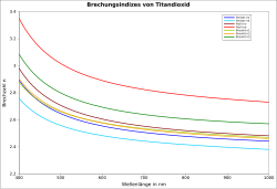 Der Brechungsindex von Titanoxid ist hoch, außerdem zeigt es eine große Dispersion. Der Brechungsindex hängt