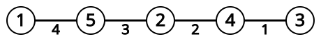 Eine entsprechende graziöse Beschriftung für den linearen Graphen mit fünf Knoten zeigt die folgende Zeichnung.