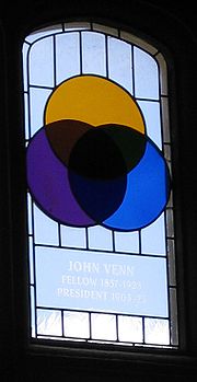 Venn-Diagramme sind vor allem in der Darstellung für drei Mengen mit Kreisen bekannt. Venn hatte jedoch den Ehrgeiz, „in sich elegante symmetrische Figuren“ zu finden, die eine größere Anzahl an Mengen darstellen, und zeigte ein Diagramm für vier Mengen in Ellipsenform. Er gab dann ein Konstruktionsverfahren an, mit dem man Venndiagramme für eine „beliebige“ Anzahl von Mengen darstellen kann, wobei jede geschlossene Kurve mit den anderen verflochten ist, ausgehend vom Diagramm mit drei Kreisen. Dabei wird ein „Schlauch“ über die jeweils letzte Mengendarstellung gezogen. Damit werden alle anderen Mengen geschnitten.
