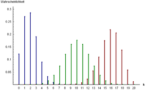 wobei die Aufteilung der Binomialverteilung entspricht. Je nach Konstruktion
