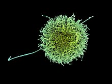 NK-Zellen (natürliche Killerzellen) gehören zu den Lymphozyten (Untergruppe der weißen Blutzellen oder Leukozyten). Sie sind in der Lage, abnormale Zellen wie Tumorzellen und virusinfizierte Zellen zu erkennen und abzutöten. NK-Zellen besitzen keine Antigen-spezifischen Rezeptoren und gehören zum angeborenen Immunsystem (daher die historisch begründete Bezeichnung „natürlich“). Gesunde Menschen haben einen Anteil von 5–15 % NK-Zellen an peripheren mononuklearen Blutzellen.[1]
