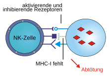 NK-Zellen unterscheiden Tumorzellen und Zellen, die von intrazellulären Mikroorganismen befallen sind, von normalen, körpereigenen Zellen mit Hilfe spezieller Rezeptoren (u. a. KIR-Moleküle, NKG2 mit CD94 und natürliche zytotoxische Rezeptoren), die mit MHC-Klasse-I-Molekülen auf der Oberfläche der Zielzellen interagieren. Tumor- und infizierte Zellen werden normalerweise von den cytotoxischen T-Lymphozyten aufgrund von Fremd-Antigenen, die sie im Komplex mit den MHC-I-Molekülen auf ihrer Oberfläche präsentieren, erkannt und eliminiert. Einige Viren sind in der Lage, die Präsentation von MHC-I-Molekülen auf der Oberfläche ihrer Wirtszellen zu unterdrücken und entgehen so der Zerstörung durch T-Lymphozyten. Die verminderte Expression der MHC-Moleküle auf Tumorzellen und von Mikroorganismen befallenen Zellen wird nun von den NK-Zellen erkannt und führt zur Apoptose der Zielzelle, ein Prinzip, das von dem schwedischen Immunologen Klas Kärre postuliert wurde und als Missing-self-Hypothese bezeichnet wird.