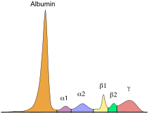 Plasmaproteine ist ein Sammelbegriff für die am häufigsten im Blutplasma vorkommenden Blutproteine. Ihre Gesamtkonzentration beträgt 60–80 g/l. Trennt man diese Proteine mittels Elektrophorese auf, so erhält man Albumine und Globuline. Letztere werden entsprechend ihrer elektrophoretischen Beweglichkeit in vier Unterklassen (α1-, α2-, β- und γ-Globuline) unterteilt. Hauptsächlich handelt es sich um Glykoproteine, Lipoproteine und Metalloproteine. Ihre Molekülmasse beträgt 67 kDa für Albumine und zwischen 67 kDa und 1,3 MDa für Globuline.