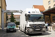 Es gibt Röntgengeräte, die ganze LKW-Ladungen oder Container durchleuchten können[21] oder auch mobile Geräte, welche zur Durchleuchtung eines ganzen Flugzeugs ausgelegt sind.[22]
