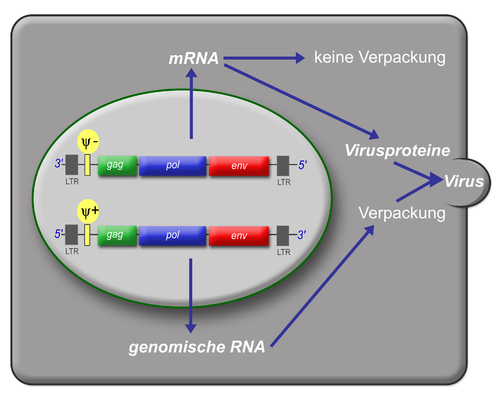 Retroviren sind die einzigen einsträngig-plusstrangorientierten RNA-Viren, bei denen das Genom nicht sofort als Matrize (mRNA) bei der Infektion benutzt werden kann: Wenn das Virus diese RNA in die zu befallende Zelle eingebracht hat, muss die RNA in doppelsträngige DNA umgeschrieben werden. Dieser Vorgang wird reverse Transkription genannt. Dazu bringt das Virus die Reverse Transkriptase in seinen Viruspartikeln mit. Diese schreibt die einzelsträngige RNA des Virus zuerst in einzelsträngige DNA und anschließend in doppelsträngige DNA um. Bei der reversen Transkription werden die beiden LTR-Sequenzen generiert, die für den weiteren Ablauf der Infektion essenziell sind.
