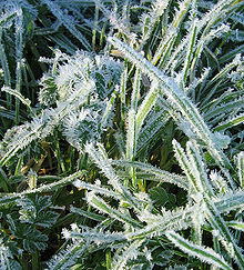 Der Grashalm unterkühlt also merklich unter die Lufttemperatur. Er unterschreitet nicht nur die Taupunkttemperatur der Luft (+3,5 °C), so dass Tau ausfällt, er unterschreitet auch den Gefrierpunkt, so dass sich der Tau als Reif niederschlägt (bei fortdauerndem Bereifen wäre die freiwerdende Latentwärme in der Energiebilanz zu berücksichtigen). Es tritt Bodenfrost (konkret Strahlungsfrost) auf, obwohl die Lufttemperatur deutlich über dem Gefrierpunkt liegt.