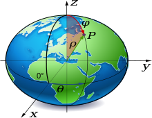 Heute ist es üblich, ein Ellipsoid festzulegen, das global im Mittel die geringsten Abweichungen aufweist. Der Koordinatenursprung des globalen Systems liegt im Zentrum des Ellipsoiden und im Schwerpunkt der Erde, die z-Achse senkrecht zur kreisförmigen Äquatorebene in Richtung der Erdrotationsachse.