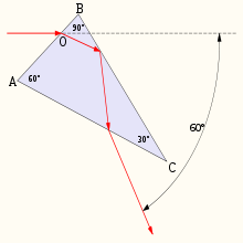 Das Prisma ist für eine definierte Wellenlänge des Lichts ausgelegt und lenkt diese um genau 60° vom ursprünglichen Strahlenverlauf ab. Alle anderen Wellenlängen werden um größere oder kleinere Winkel abgelenkt. Die Auswahl der Wellenlänge geschieht durch Drehung des Prismas in der Ebene der Grundfläche und ist aufgrund des Verlaufs der Dispersion nicht-linear zum Drehwinkel.
