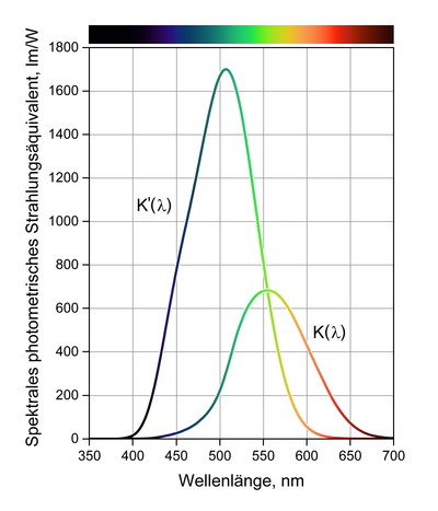 Aus dem breiten Wellenlängenspektrum elektromagnetischer Strahlung ist der Wellenlängenbereich von etwa 380 bis 780 Nanometern (nm) „sichtbar“, das heißt Strahlung aus diesem Bereich löst im Auge eine Helligkeitsempfindung aus und wird als Licht wahrgenommen. Das Auge ist jedoch nicht für alle sichtbaren Wellenlängen gleich empfindlich. Auf Wellenlängen am Rand des sichtbaren Bereiches ist eine höhere Strahlungsintensität nötig, um dieselbe Helligkeitsempfindung zu bewirken als in seiner Mitte.