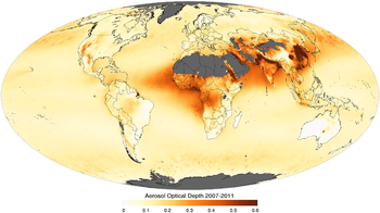 Die über die gesamte Atmosphäre integrierte aerosol optische Dicke (AOD, Funktion der Ångström Koeffizienten) lässt sich durch verschiedene fernerkundliche Verfahren ihrer raumzeitlichen Verbreitung kartieren. Dazu sind Annahmen bezüglich der Reflexionseigenschaften der Erdoberfläche zu treffen (zum Beispiel: Reflexion tiefer klarer Wasserflächen im nahen Infrarot ist gleich null). Solche Verfahren werden in der Fernerkundung eingesetzt, um die vom Satelliten aufgenommenen Bilder zu korrigieren.